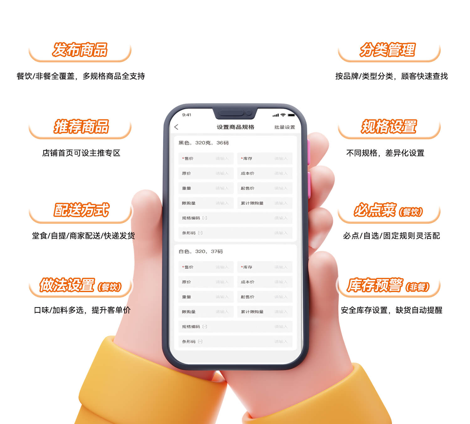 在线售卖 配送经营 到店核销 商品管理