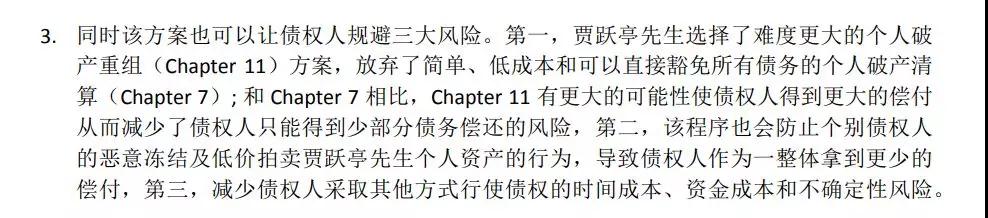 但问题来了,这次老贾为什么不选择轻松愉快的“个人破产清算”(《破产法案》第七章),落得无债一身轻,重新做人?或者是干脆“跑路”,人间蒸发,做个隐居深山的“空气富豪”呢?
