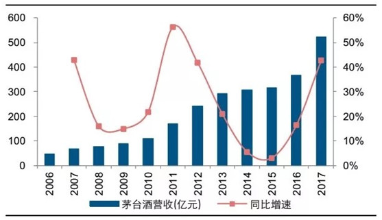 2011年,由于价格水涨船高,茅台营收增速达到58%,成为白酒行业龙头。然而,没高兴几年,“八项规定”出台,茅台再次受到重击。